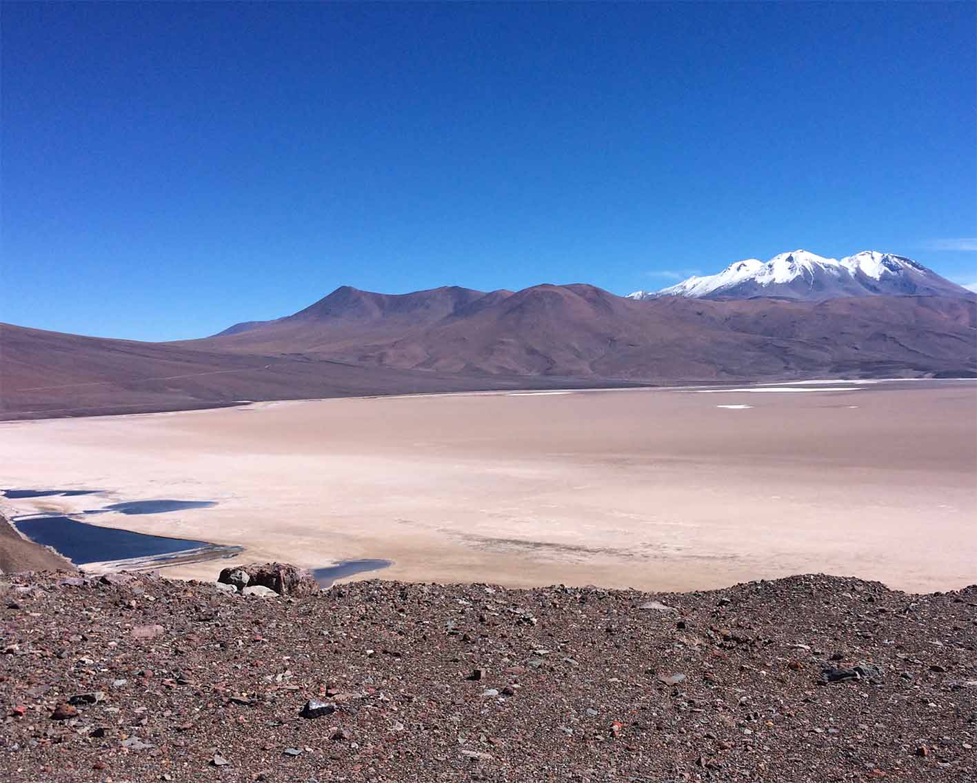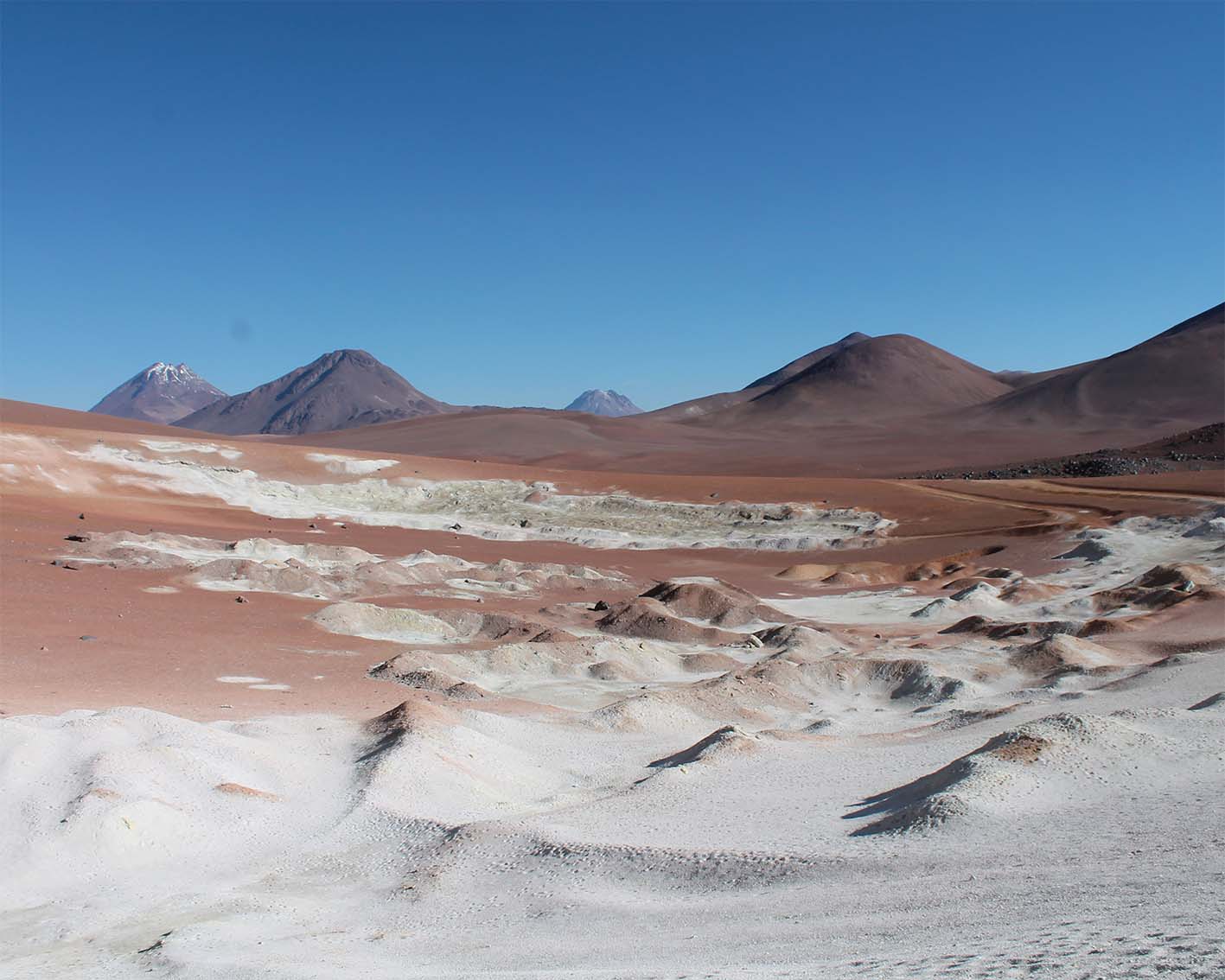 S’étendant sur près de 1600 km entre la côte à l’Ouest et la cordillère des Andes à l’Est, le désert d’Atacama au Chili représente le désert le plus aride sur Terre (en dehors des pôles). Dans sa partie centrale, hyperaride, les précipitations annuelles ne dépassent pas les 2 mm/an. A l’Est, le désert inclut une portion volcaniquement active des Andes, la faune et la flore apparaissent discrètement autour des points d’eau présents sur l’altiplano, à des altitudes > 4000 m. La diversité de ses formations géologiques et l’absence de nuages et de végétation font de ce désert un excellent terrain d’entrainement pour tester et calibrer les outils de télédétection planétaire. Les prédictions orbitales peuvent ensuite être confrontées à la «vérité-terrain».