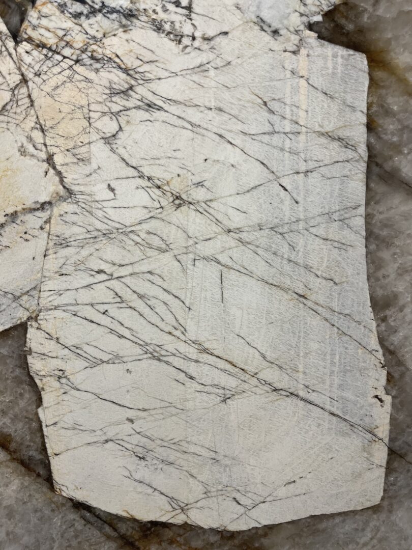 Cette roche, appelée Granite Patagonia par les marbriers, provient de la région de Galiléia, près de Governador Valadares, État de Minas Gérais, Brésil (Voir la galerie « Pegmatito do Brasil » ; photos : M. Barthez).