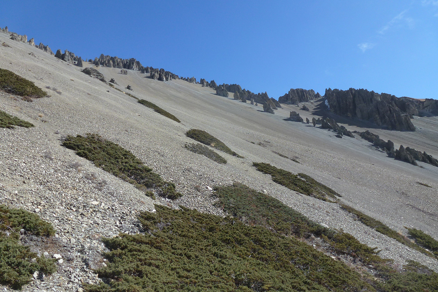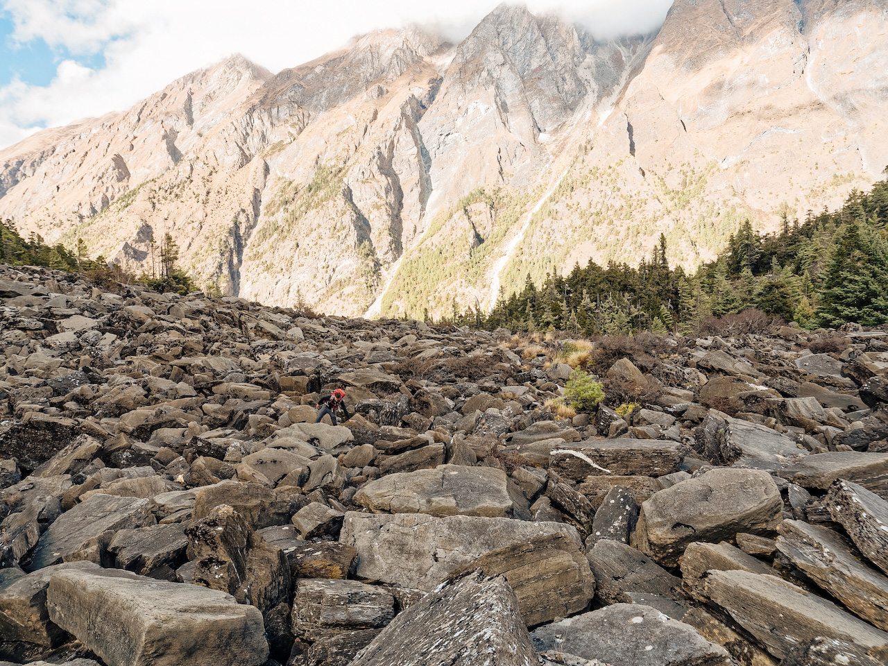 Appréhender l’aléa gravitaire dans cette région passe notamment par l’identification des glissements géants et leur datation. Les restes de ces glissements se caractérisent par des brèches très claires, compactes et indurées, que le ruissellement a sculpté en jardins de pénitents, en dents acérées, dressées au pied des falaises englacées des hauts sommets himalayens, autant de paysages surprenants que spectaculaires.