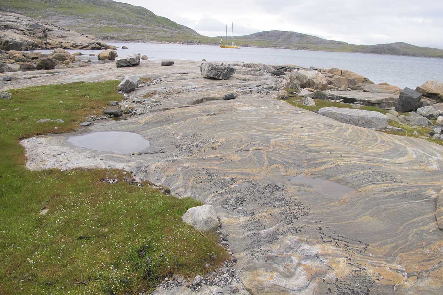 Le Nunatsiavut, (notre beau pays en Inuktitut) est un territoire Inuit autonome. Sa côte comptait au XIXème siècle, plusieurs villages établis par des missionnaires moraves, venus de l’est de l’Allemagne, évangéliser les population locales. En 1959, ces villages ont été évacués par le gouvernement canadien dans un contexte géopolitique de guerre froide qui faisait de cette côte un lieu militaire stratégique. Il n’existe plus, aujourd’hui, de village au Labrador septentrional ni d’infrastructures permettant d’assurer la logistique d’une mission scientifique. C’est donc par la route, un trajet d’environ 2000 km de Montréal à Cartwright, dont 1400 km sur piste gravillonnée que nous avons atteint le petit port de Cartwright pour y rejoindre Sebastien Roubinet, Anne-Lise Vacher-Morrazzani et leur petite fille Anouk, tous trois navigateurs aguerris aux voyages en région arctique. A bord de la V’limeuse, leur voilier en acier de 14 mètres, nous sommes remonté sur plus de 600 miles le long de la côte majestueuse du Labrador, jusqu’au fjord de Hébron et à la baie de Saglek où notre équipe a séjourné plusieurs semaines afin d’y effectuer un travail de terrain passionnant, à la recherche des plus vieilles roches du monde.