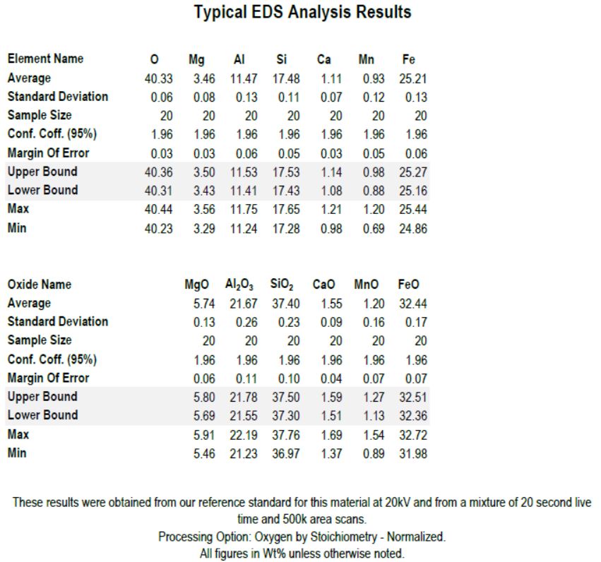 This mineral may contain some inclusions that will be visible using BSE. These inclusions should be avoided and analysis restricted to the main matrix.
