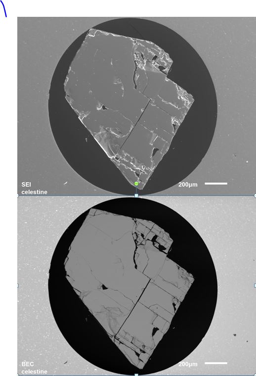 At higher magnification this minerals may contain some lighter phases visible using BSE. These areas are higher in Ba and should be avoided during analysis