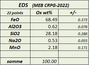 mostly homogeneouys, some inclusions (FeO, ferrosilite, …)