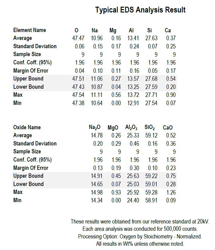 This natural material contains phases, use higher magnification for analysis.Lighter areas should be avoided as deficient in Al and high in Ca Traces of Ca maybe detected.