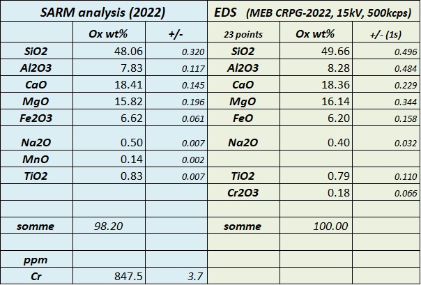 Pyroxene (Vandoeuvre) Analysis