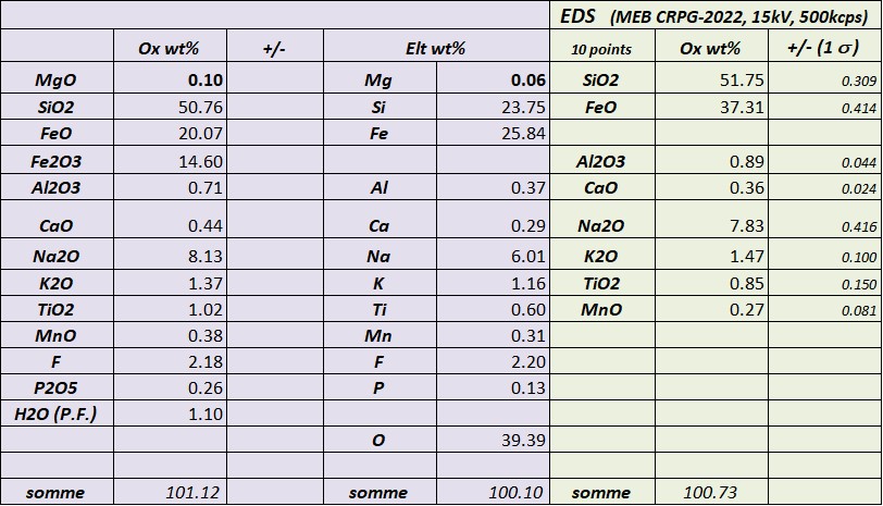 Mostly homogeneous, some inclusions SiO2, FeO, …